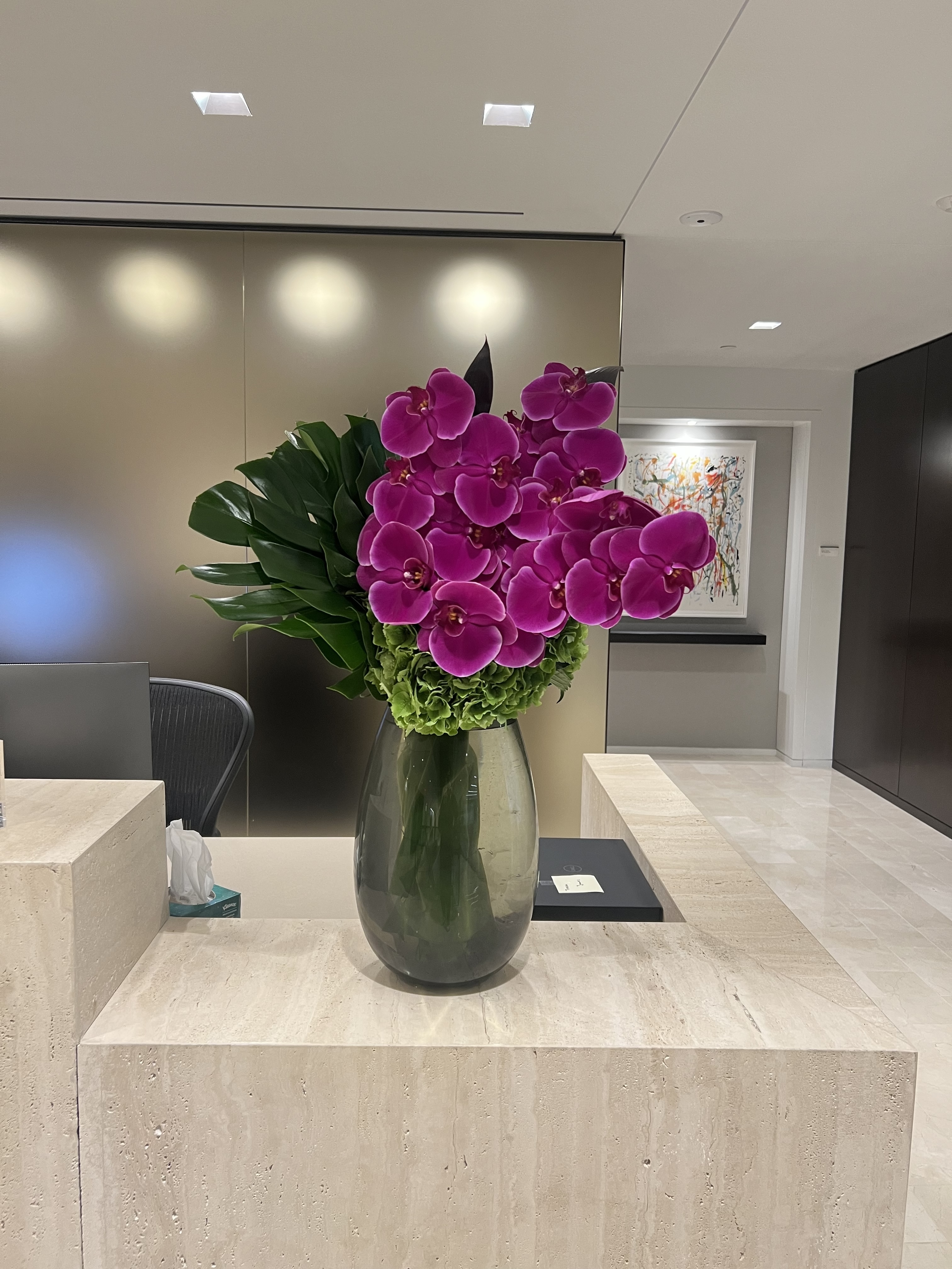 Conrad New York Downtown is adorned with over 2,000 pieces of inspiring artwork. My modern and stylish floral arrangements are thoughtfully designed to harmonize with this artistic ambiance, adding a fresh and creative touch to the hotel’s sophisticated environment.